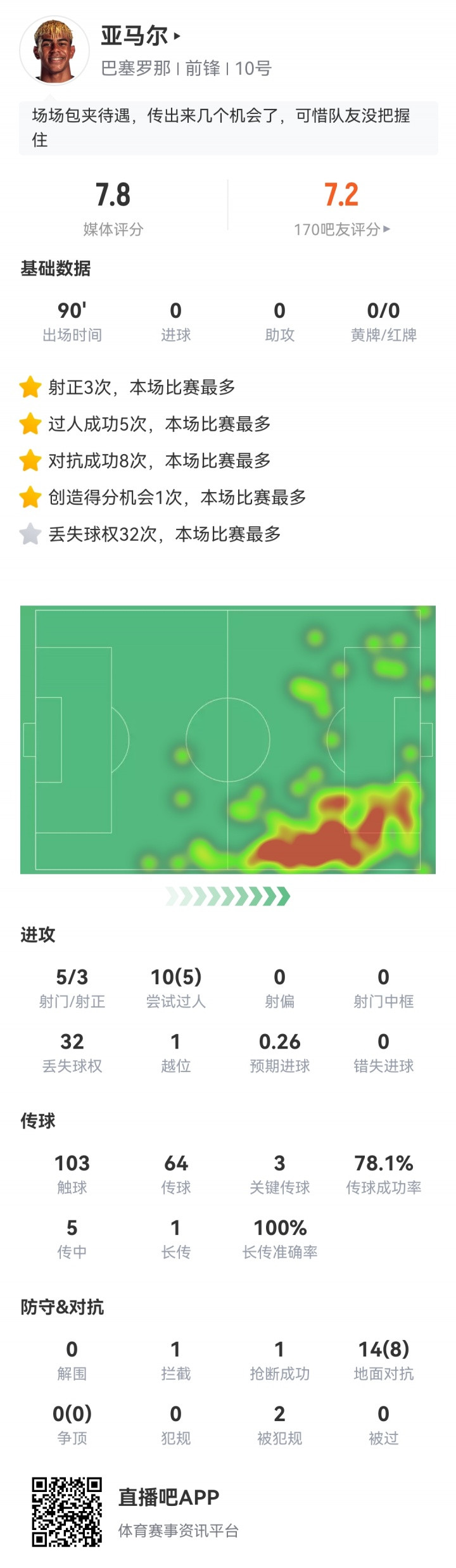 亚马尔本场数据↓
